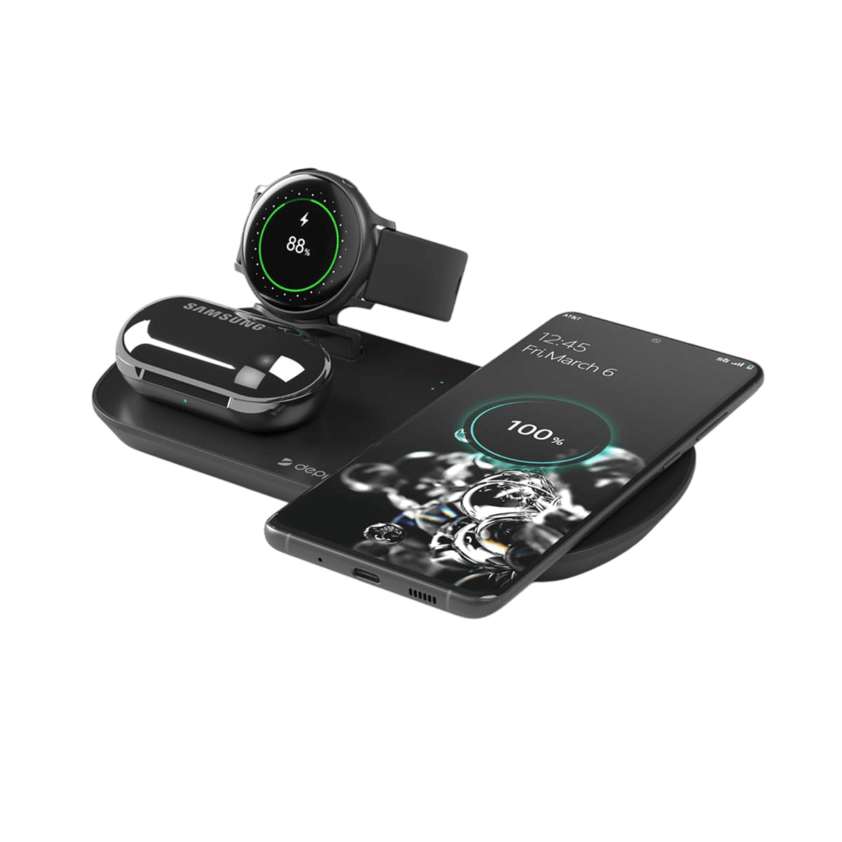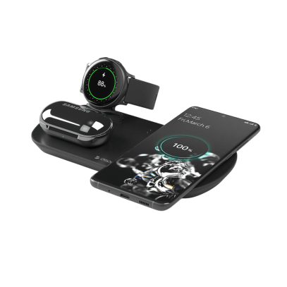 Беспроводная зарядная станция 3 в 1 идеально дополнит ваше рабочее место. Заряжайте все ваши устройства одновременно, с комфортом и без лишних проводов. Достаточно подключить станцию к сети и разместить на ней смартфон, Galaxy Buds и Galaxy Watch, зарядка начнётся автоматически, а каждое из устройств получит максимум мощности.