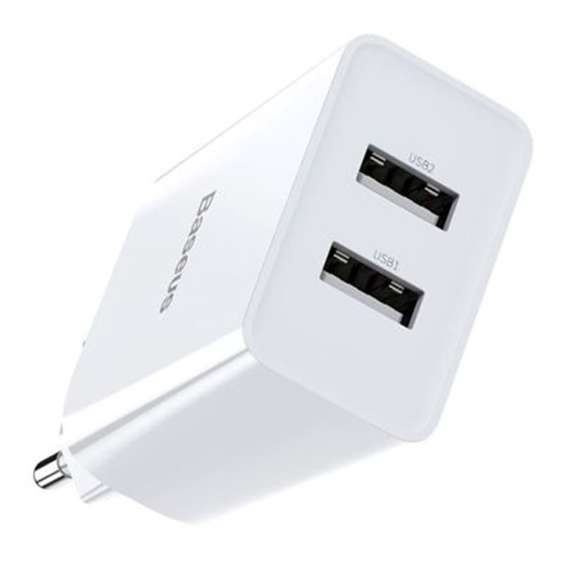Сетевое зарядное устройство для зарядки одновременно до двух устройств. Подойдёт для зарядки телефонов и планшетов. Встроенный смарт-чип автоматически определит необходимое напряжение в зависимости от типа устройства. Поддерживает быструю зарядку.