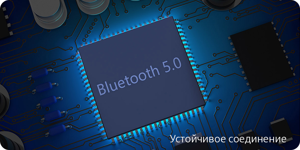 Новый чип Bluetooth 5.0 отличается ещё более высокой скоростью передачи данных и устойчивым сигналом. Он совместим со многими устройствами, имеет низкое энергопотребление и всегда готов помочь в прослушивании музыки.