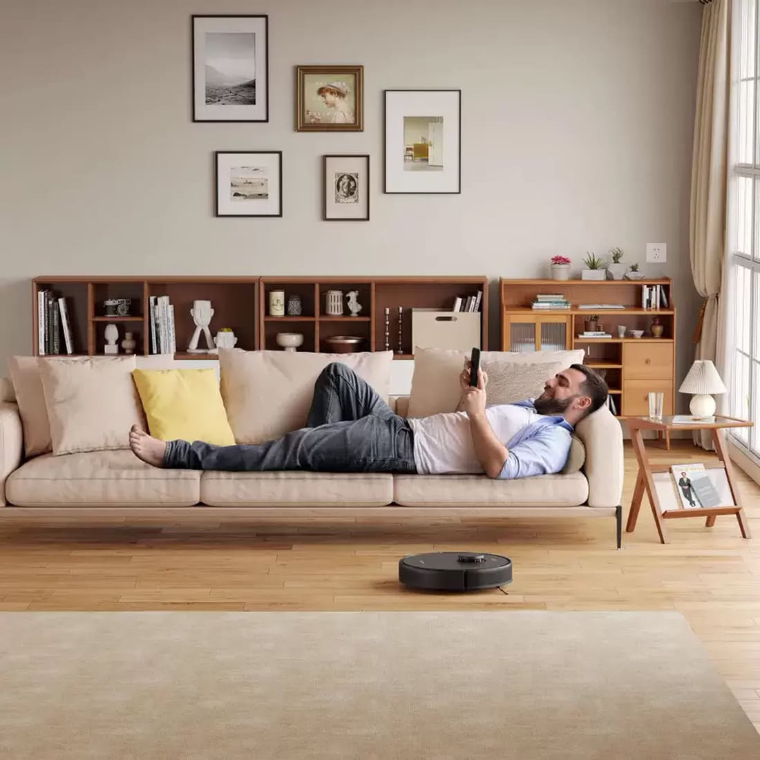 Оснащённый мощным аккумулятором и длительным временем работы, этот пылесос способен убрать до 3–4 комнат на одной зарядке. В приложении вы можете настроить индивидуальные параметры уборки, выбрать зоны для очистки, установить расписание и создать виртуальные границы.